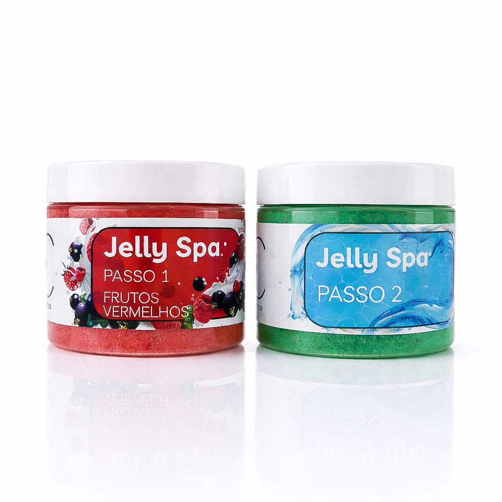 O Kit Jelly Spa é a solução perfeita para um tratamento completo de spa para os pés. Este kit inclui os dois passos essenciais: o Passo 1, que transforma a água num gel rico e aromático, proporcionando relaxamento profundo, hidratação intensa e uma experiência sensorial única; e o Passo 2, que dissolve o gel de forma rápida e eficaz, facilitando o enxaguamento e deixando a pele limpa, suave e delicadamente perfumada.